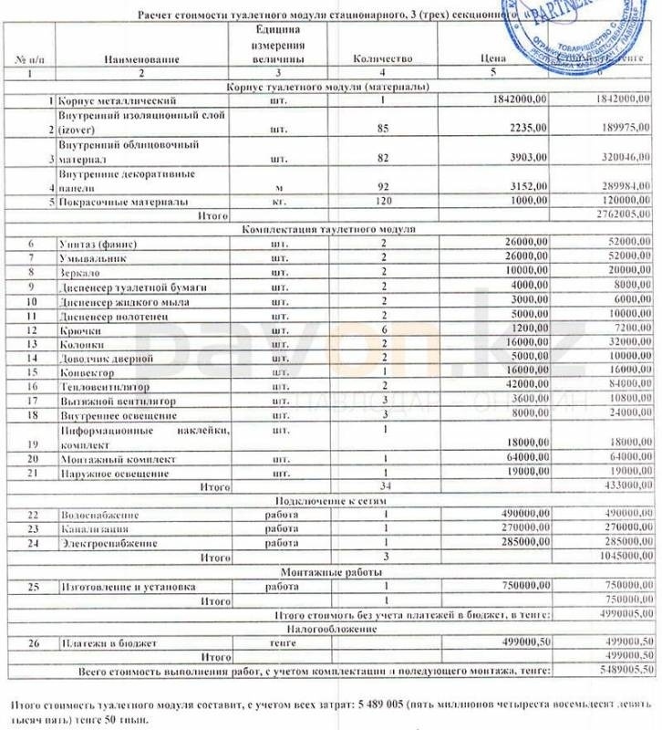 Из чего сложилась стоимость общественного туалета в Павлодаре